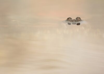 Approche respectueuse en eau peu profonde : angle bas, reflets, effets minimalistes.